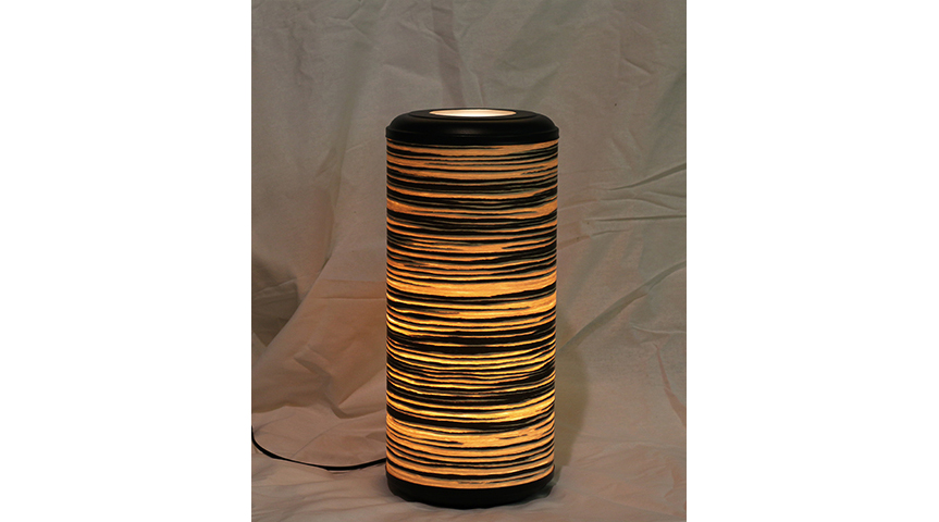 This series represents the basic geometric shape of the cylinder at its greatest slenderness. Pure and straight lines that together with the light dissipated by the chiaroscuro of the Cebrano pattern, merges in a piece of comfortable warmth.