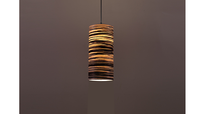This series represents the basic geometric shape of the cylinder at its greatest slenderness. Pure and straight lines that together with the light dissipated by the chiaroscuro of the Cebrano pattern, merges in a piece of comfortable warmth.